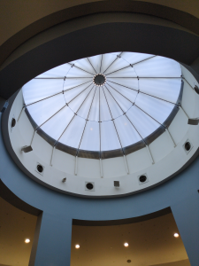 Inside it is bright and airy with a large seating area beneath a glass atrium providing plenty of natural light.